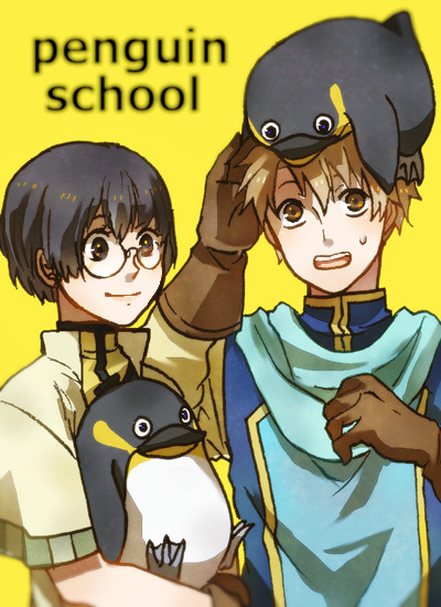ペンギン主の腕の中にぽてっと収まる左ペンギンのまったり顔にも思わずはあはあしてしまいますな……ポップな色使いと線画が可愛くて、夢主の丸メガネに、そっと手を伸ばしたくなりますな……黄色雰囲気かわいい!